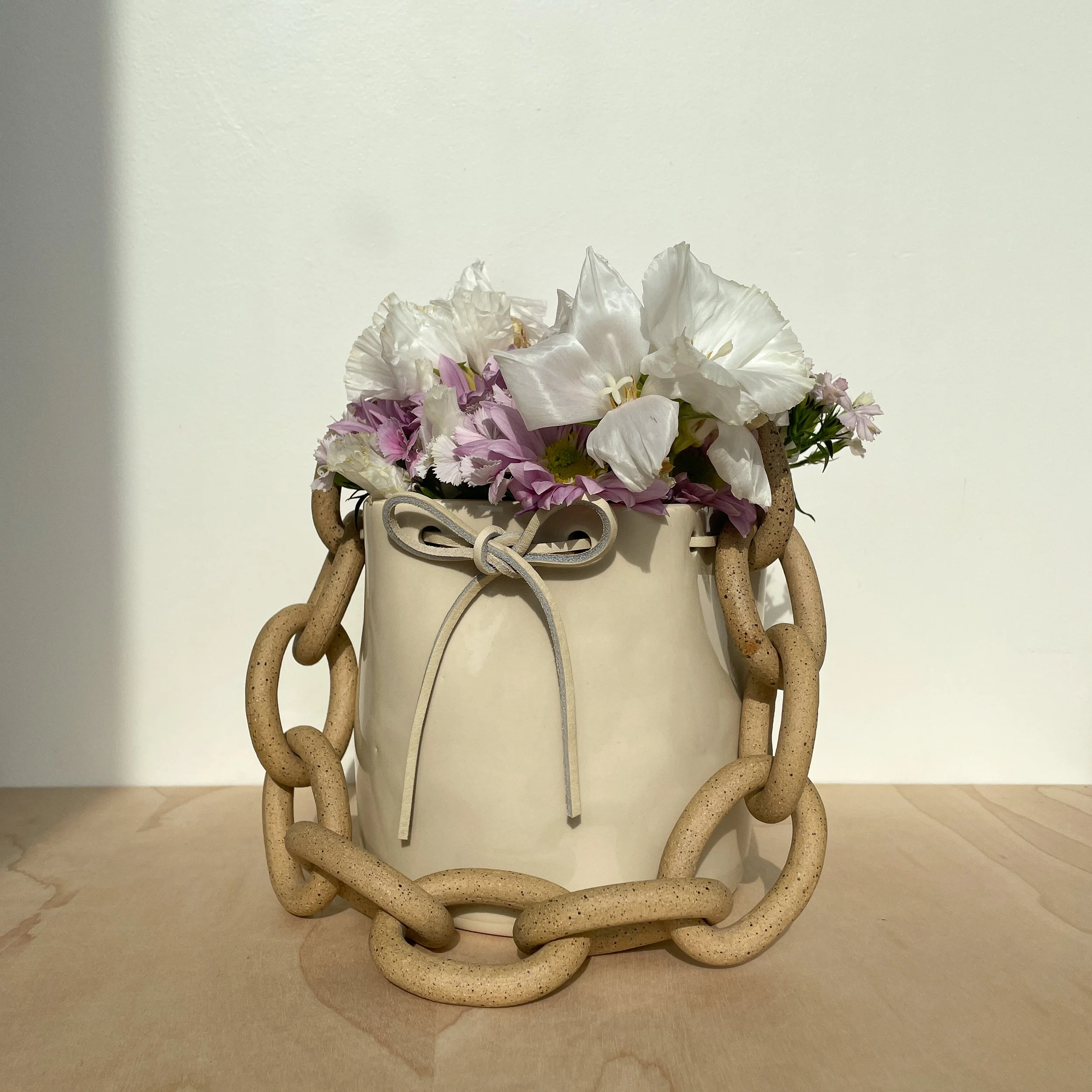Categories: All Bucket Bags Kitchenware Tableware Shop All | Bucket Bags | Kitchenware | Tableware | Bucket Bag in Speckled Pink $250.00 Sold out Salt Cellar Set $100.00 Fruit Bowl with Chains $300.00 Sold out Bucket Bag Pink Matte $250.00 Sold out Bucket Bag in White $250.00 Sold out Bucket Bag with Leather Handle $200.00 Bucket Bag with Gold Bow $300.00 Bucket Bag with Leather Bow $300.00